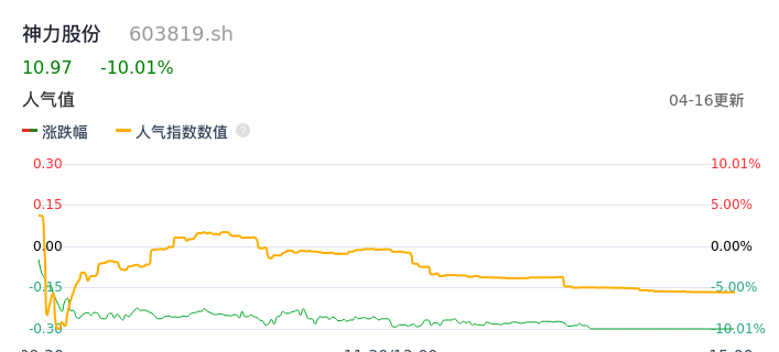 04月16日,神力股份收报10.97,股价涨幅-10.01%,成交金额2601.73万元,换手率1.07%。
