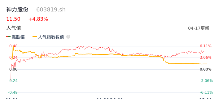 04月17日,神力股份收报11.50,股价涨幅4.83%,成交金额2336.64万元,换手率0.95%。