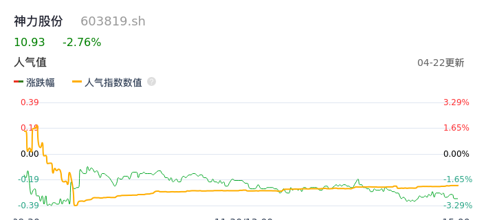 04月22日,神力股份收报10.93,股价涨幅-2.76%,成交金额2127.56万元,换手率0.89%。