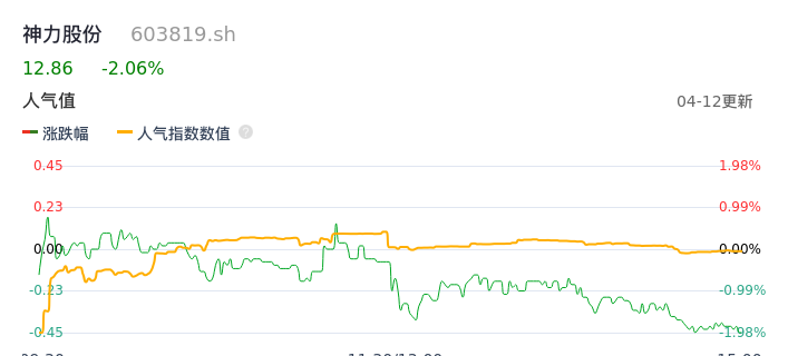 04月12日,神力股份收报12.86,股价涨幅-2.06%,成交金额1935.00万元,换手率0.68%。