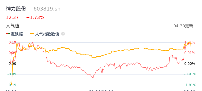 04月30日,神力股份收报12.37,股价涨幅1.73%,成交金额2275.10万元,换手率0.85%。