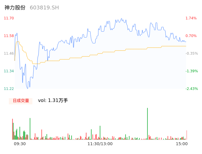 04月18日,神力股份收报11.54,股价涨幅0.35%,成交金额1505.54万元,换手率0.60%。