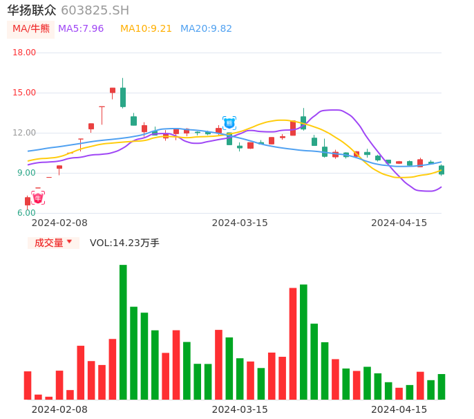 04月15日,华扬联众收报8.90,股价涨幅-7.96%,成交金额1.29亿元,换手率5.62%。