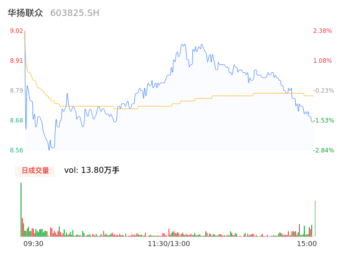 04月18日,华扬联众收报8.66,股价涨幅-1.70%,成交金额1.21亿元,换手率5.46%。