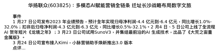 值得注意的是:2024年03月中邮证券的王晓萱/刘静茹分析师,首次发布关于华扬联众的研究报告,标题为:华扬联众(603825):多模态AI赋能营销全链条 迁址长沙战略布局数字文旅。