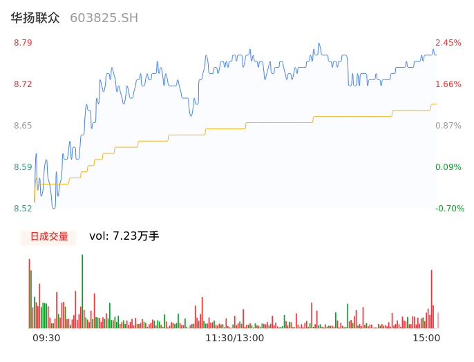 04月24日,华扬联众收报8.78,股价涨幅2.33%,成交金额6276.40万元,换手率2.85%。