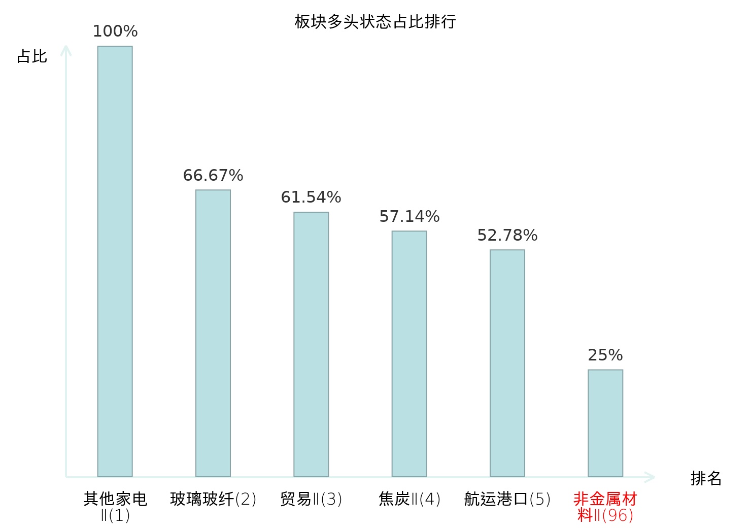 全市场所有行业板块中主力多头状态占比排名中,其他家电Ⅱ板块位居第一。影视院线板块名次提升最快,较昨日上升62位。