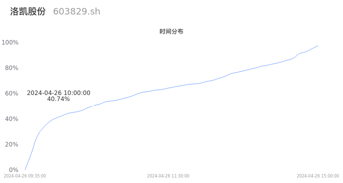 603829洛凯股份2024年04月26日成交3.87万手,成交金额4733.20万元,相较昨日放量1.73万手,换手率2.42%,成交清淡。