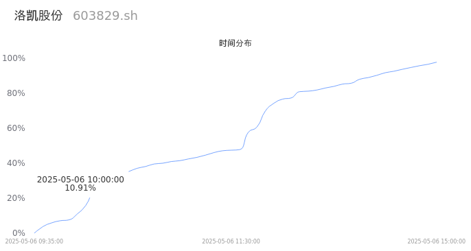 603829洛凯股份2025年05月06日成交8.86万手,成交金额1.38亿,相较昨日放量6.09万手,换手率5.54%,成交清淡。