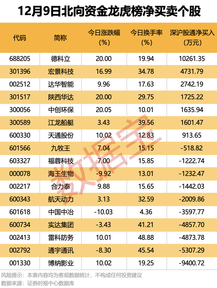 今日龙虎榜现身个股中,7股获北向资金净买入。净买入居首的是德科立,金额超1亿元。宏景科技、达华智能、陕西华达等随后,净买入金额均超1700万元。