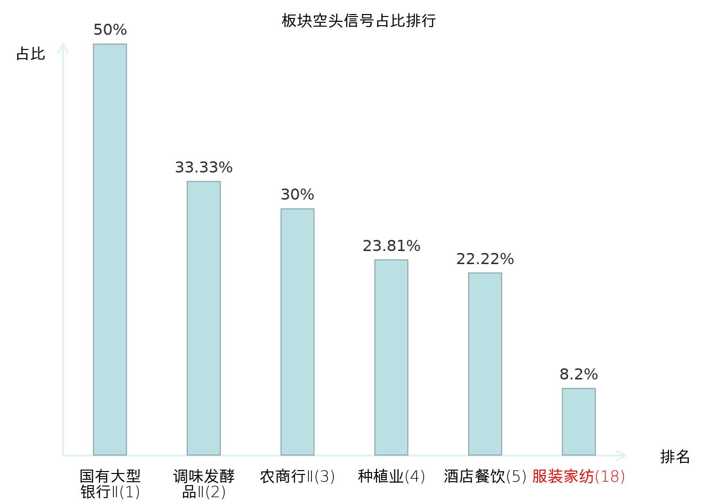 全市场所有行业板块中主力空头信号占比排名中,国有大型银行Ⅱ板块位居第一。半导体板块名次提升最快,较昨日上升94位。