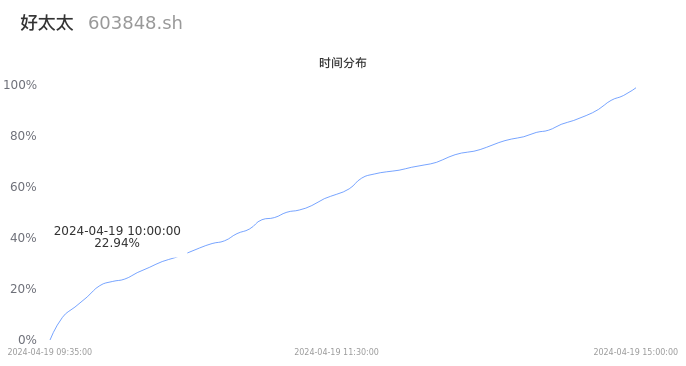 根据成交分布分析,该股票当天缩量成交,成交清淡。时间上看,早盘前半小时成交量占据当天总成交量的22.94%;价格上看,成交呈现左偏峰。成交分布分析主要研究股票成交的分布特性,不具有预测功能,请知悉。