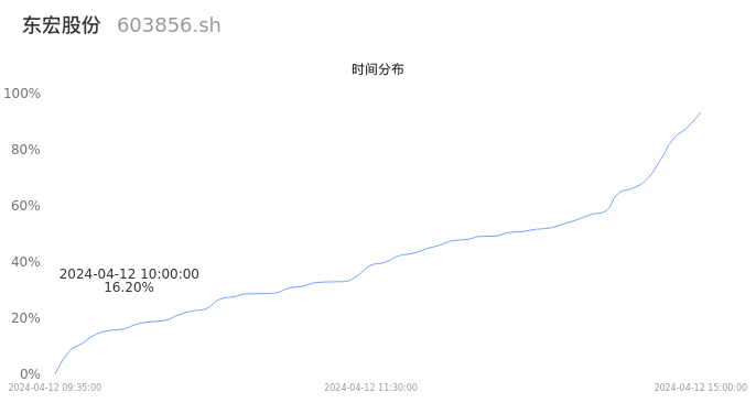 603856东宏股份2024年04月12日成交1.34万手,成交金额1382.22万元,相较昨日放量722手,换手率0.52%,成交清淡。