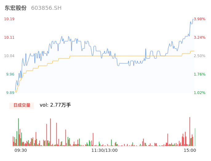 04月17日,东宏股份收报10.18,股价涨幅3.88%,成交金额2785.93万元,换手率1.08%。