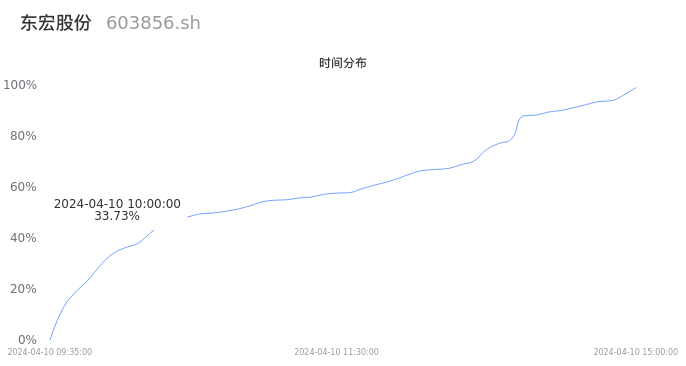 603856东宏股份2024年04月10日成交1.97万手,成交金额2047.04万元,相较昨日放量6364手,换手率0.77%,成交清淡。