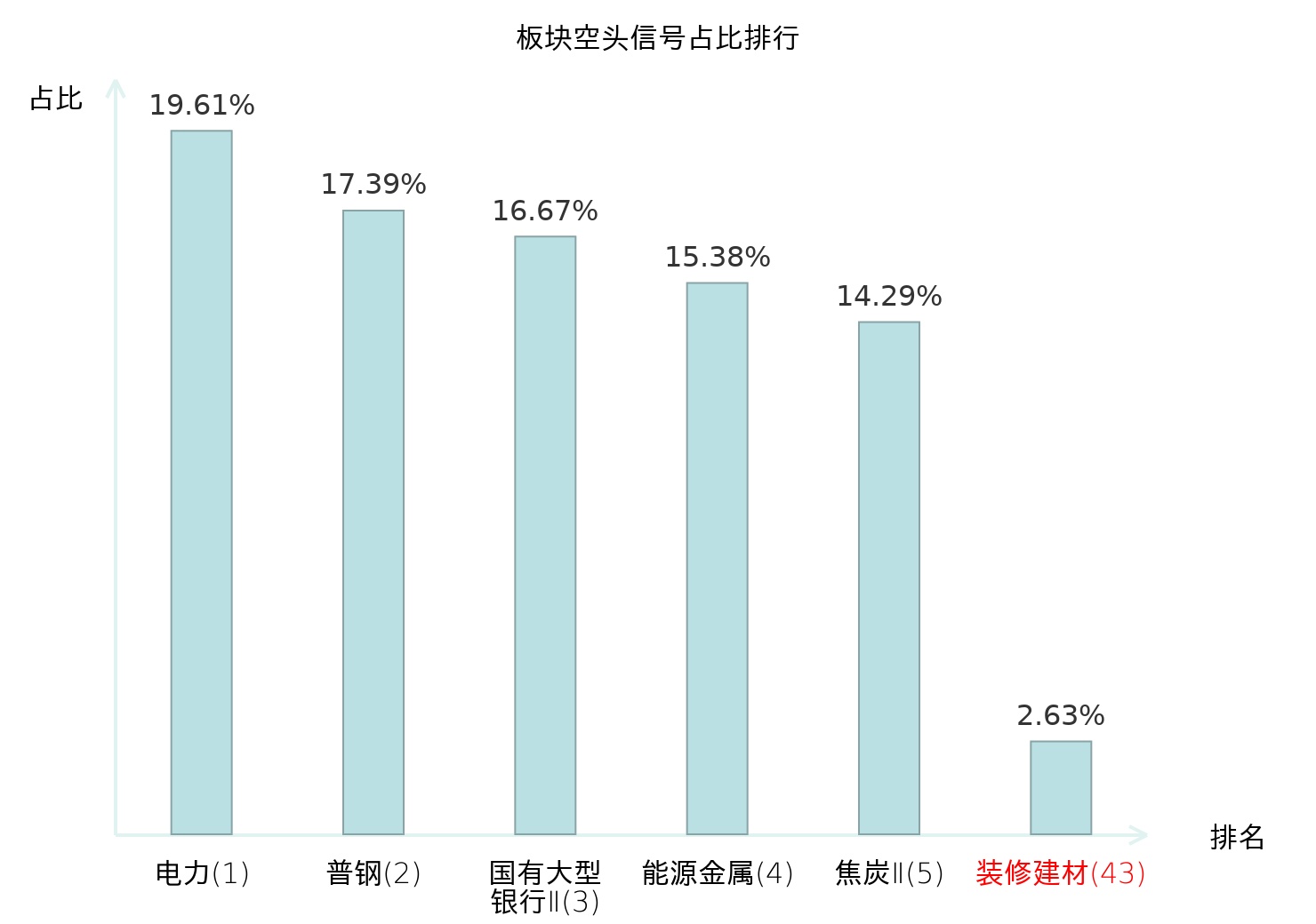 全市场所有行业板块中主力空头信号占比排名中,电力板块位居第一。服装家纺板块名次提升最快,较昨日上升107位。
