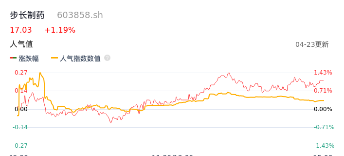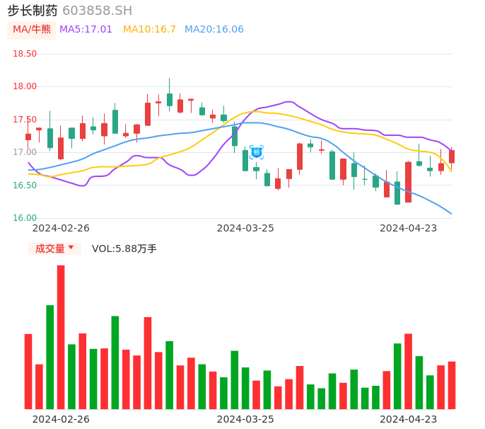 04月23日,步长制药收报17.03,股价涨幅1.19%,成交金额9949.65万元,换手率0.53%。