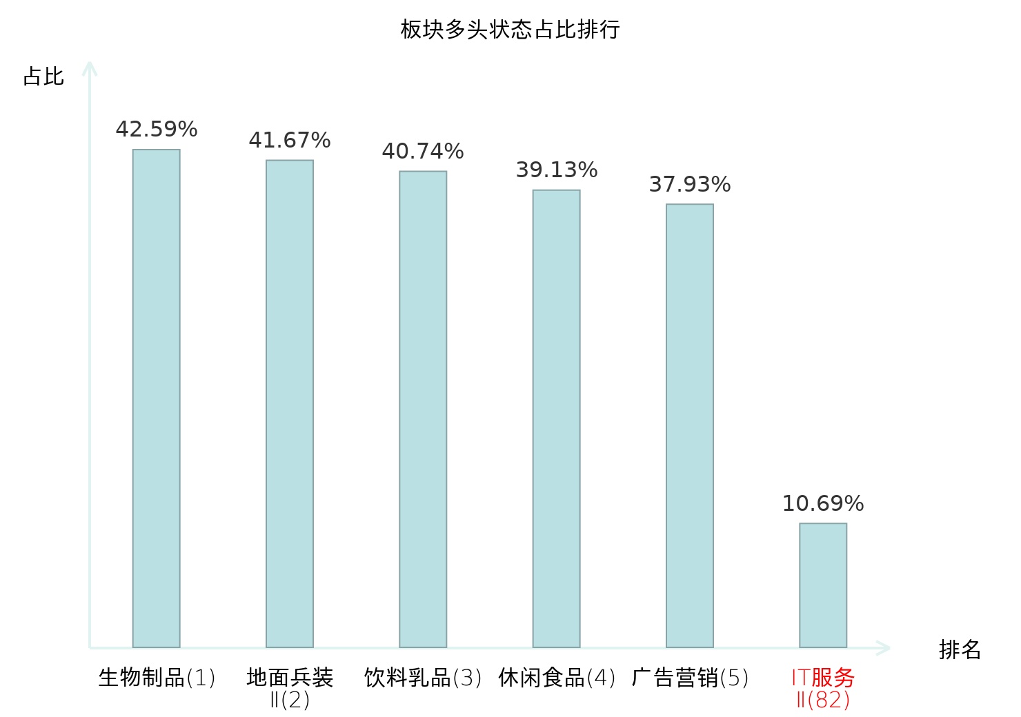 全市场所有行业板块中主力多头状态占比排名中,生物制品板块位居第一。黑色家电板块名次提升最快,较昨日上升65位。