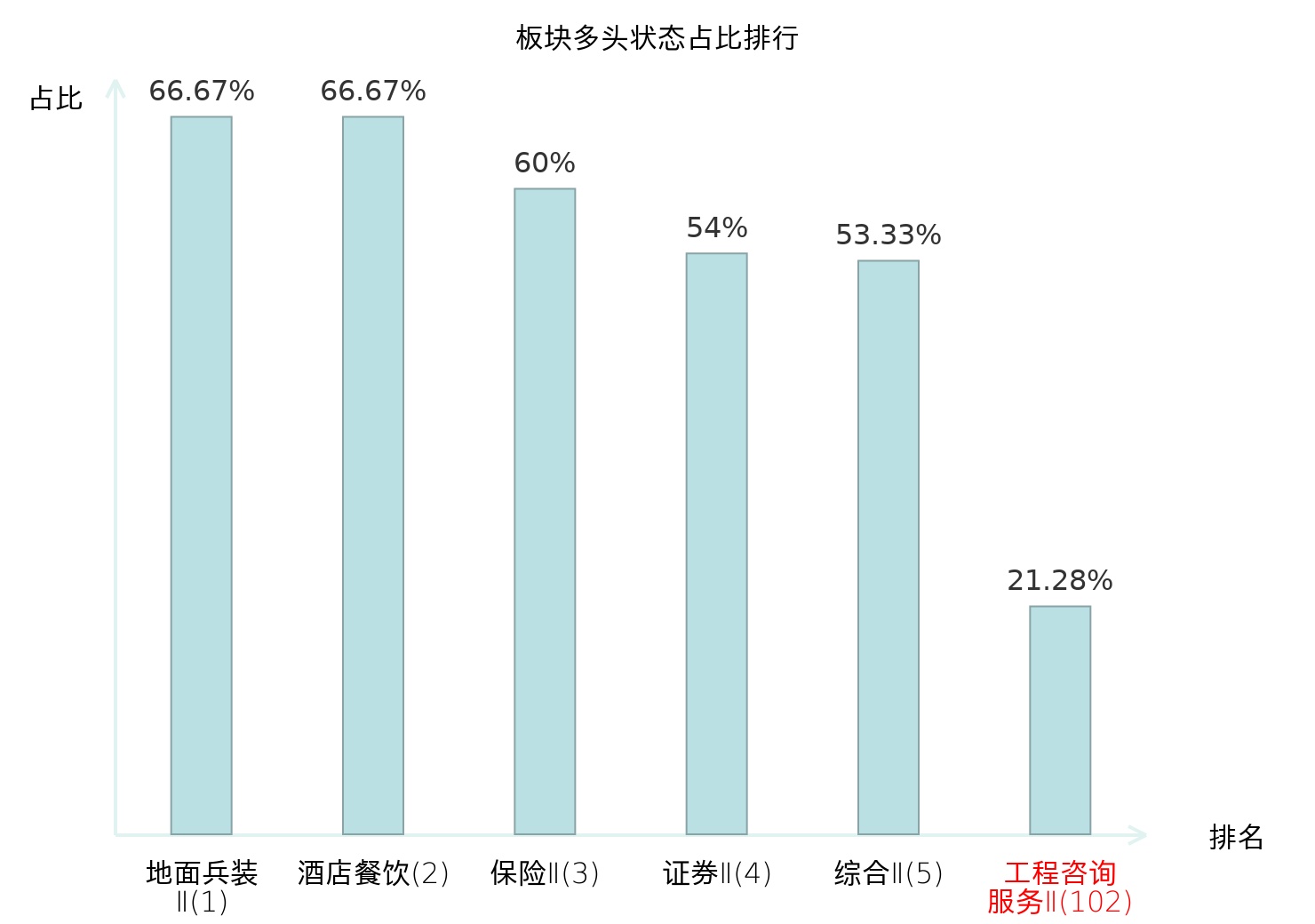 全市场所有行业板块中主力多头状态占比排名中,地面兵装Ⅱ板块位居第一。计算机设备板块名次提升最快,较昨日上升48位。