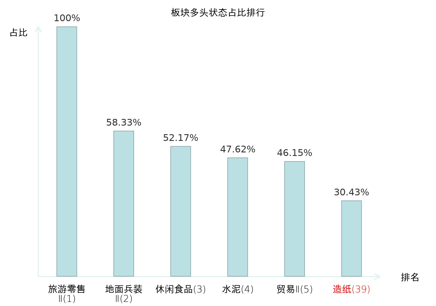 全市场所有行业板块中主力多头状态占比排名中,旅游零售Ⅱ板块位居第一。焦炭Ⅱ板块名次提升最快,较昨日上升82位。