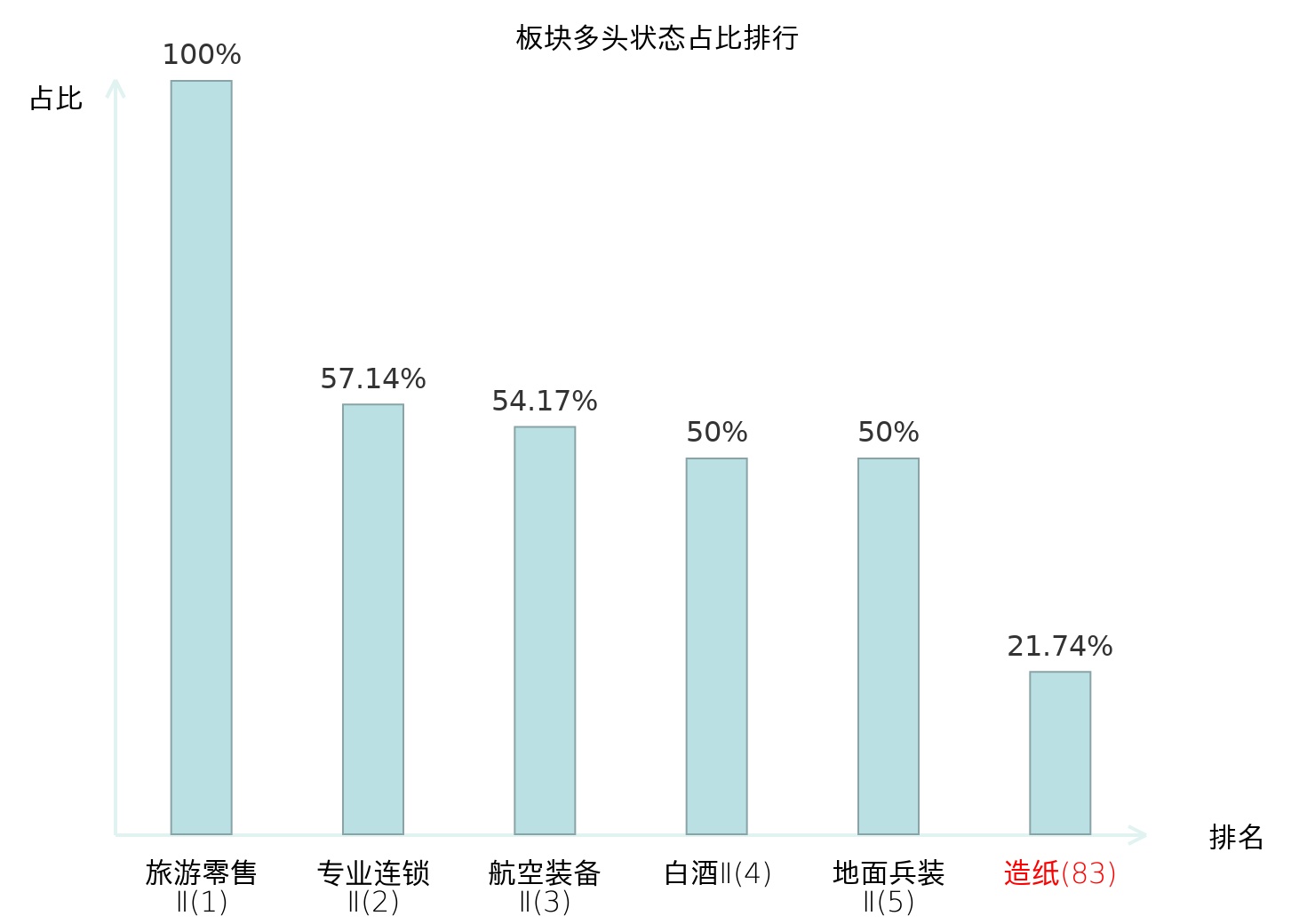 全市场所有行业板块中主力多头状态占比排名中,旅游零售Ⅱ板块位居第一。游戏Ⅱ板块名次提升最快,较昨日上升102位。