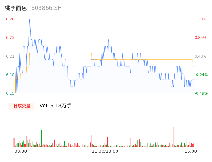 04月23日,桃李面包收报6.16,股价涨幅-0.32%,成交金额5688.27万元,换手率0.57%。