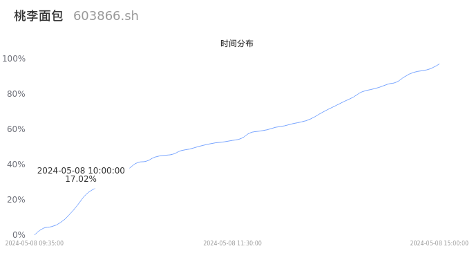 根据成交分布分析,该股票当天放量成交,成交清淡。时间上看,早盘前半小时成交量占据当天总成交量的17.02%;价格上看,成交呈现中间峰。成交分布分析主要研究股票成交的分布特性,不具有预测功能,请知悉。
