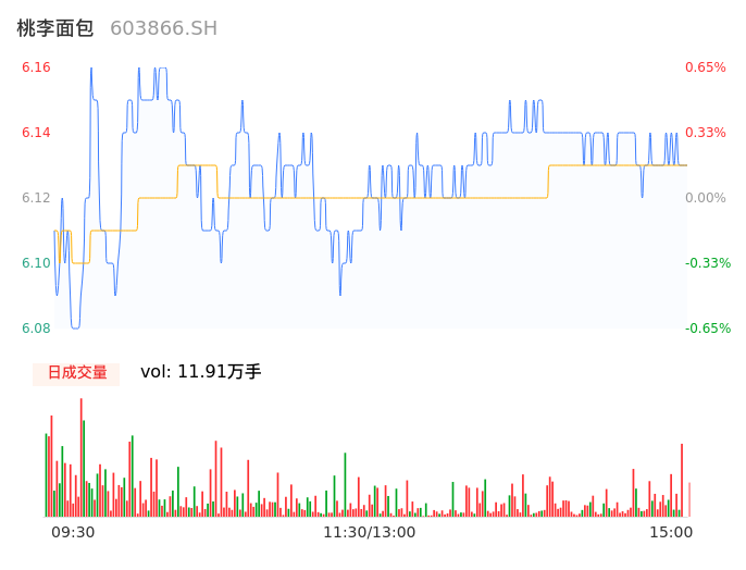 04月30日,桃李面包收报6.13,股价涨幅0.16%,成交金额7295.74万元,换手率0.74%。