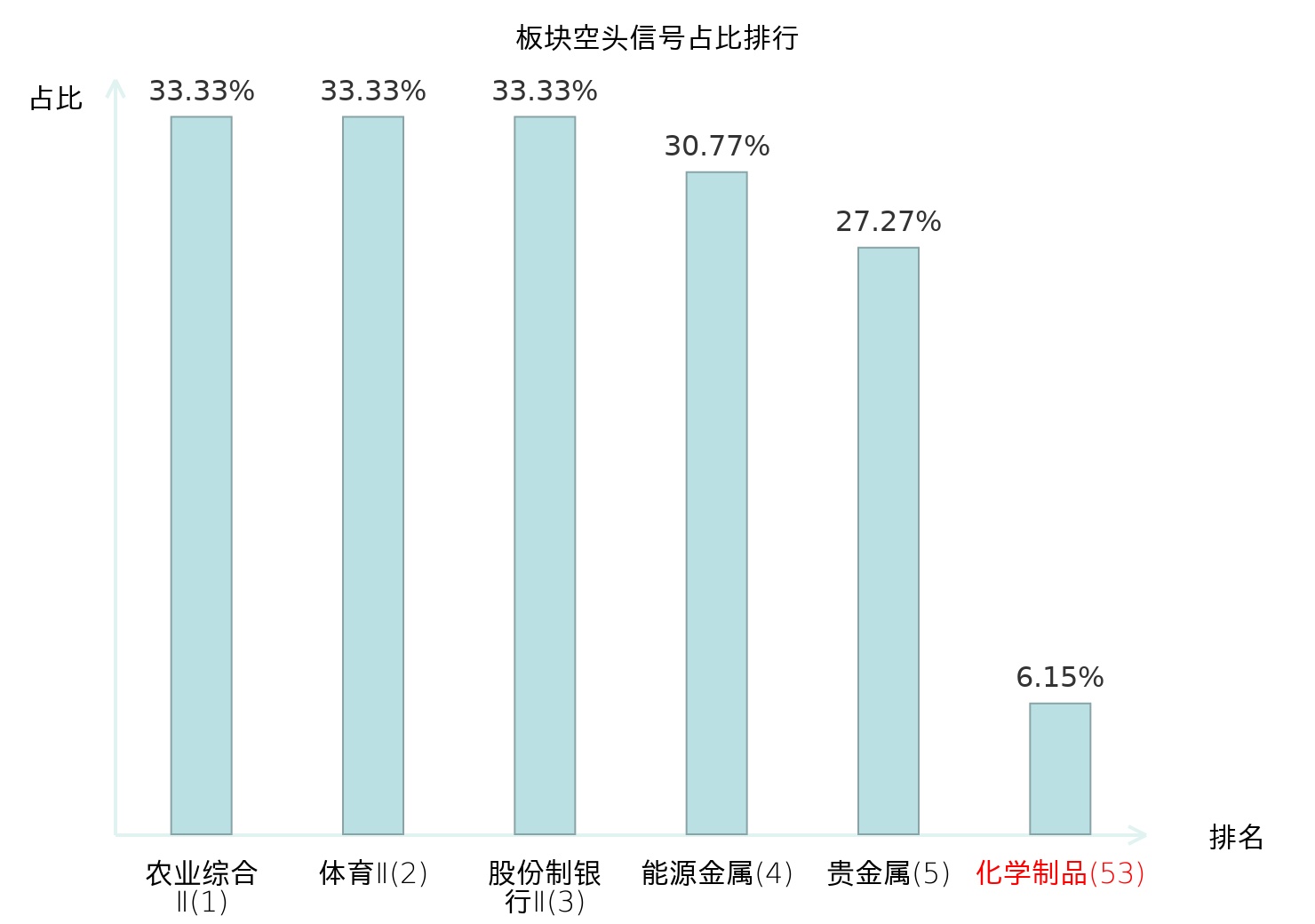 全市场所有行业板块中主力空头信号占比排名中,农业综合Ⅱ板块位居第一。出版板块名次提升最快,较昨日上升115位。