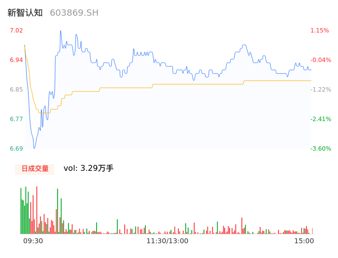 04月22日,新智认知收报6.91,股价涨幅-0.43%,成交金额2266.87万元,换手率0.65%。
