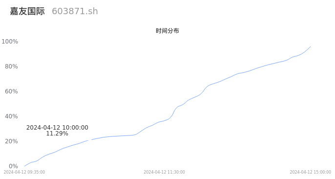 603871嘉友国际2024年04月12日成交6.17万手,成交金额1.58亿元,相较昨日放量2.26万手,换手率0.88%,成交清淡。