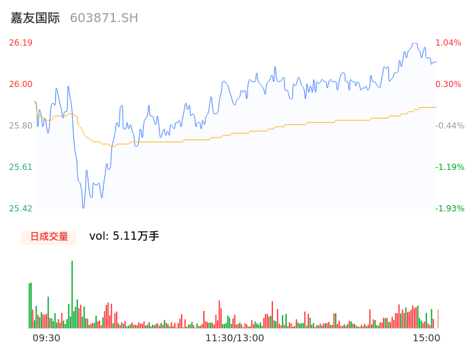 04月22日,嘉友国际收报26.10,股价涨幅0.69%,成交金额1.32亿元,换手率0.73%。
