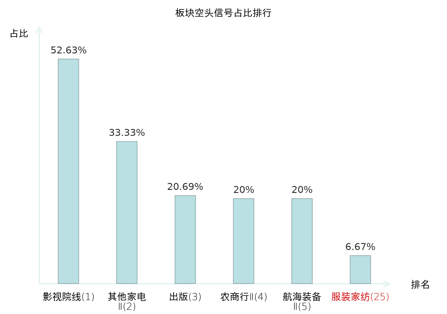 全市场所有行业板块中主力空头信号占比排名中,影视院线板块位居第一。出版板块名次提升最快,较昨日上升115位。