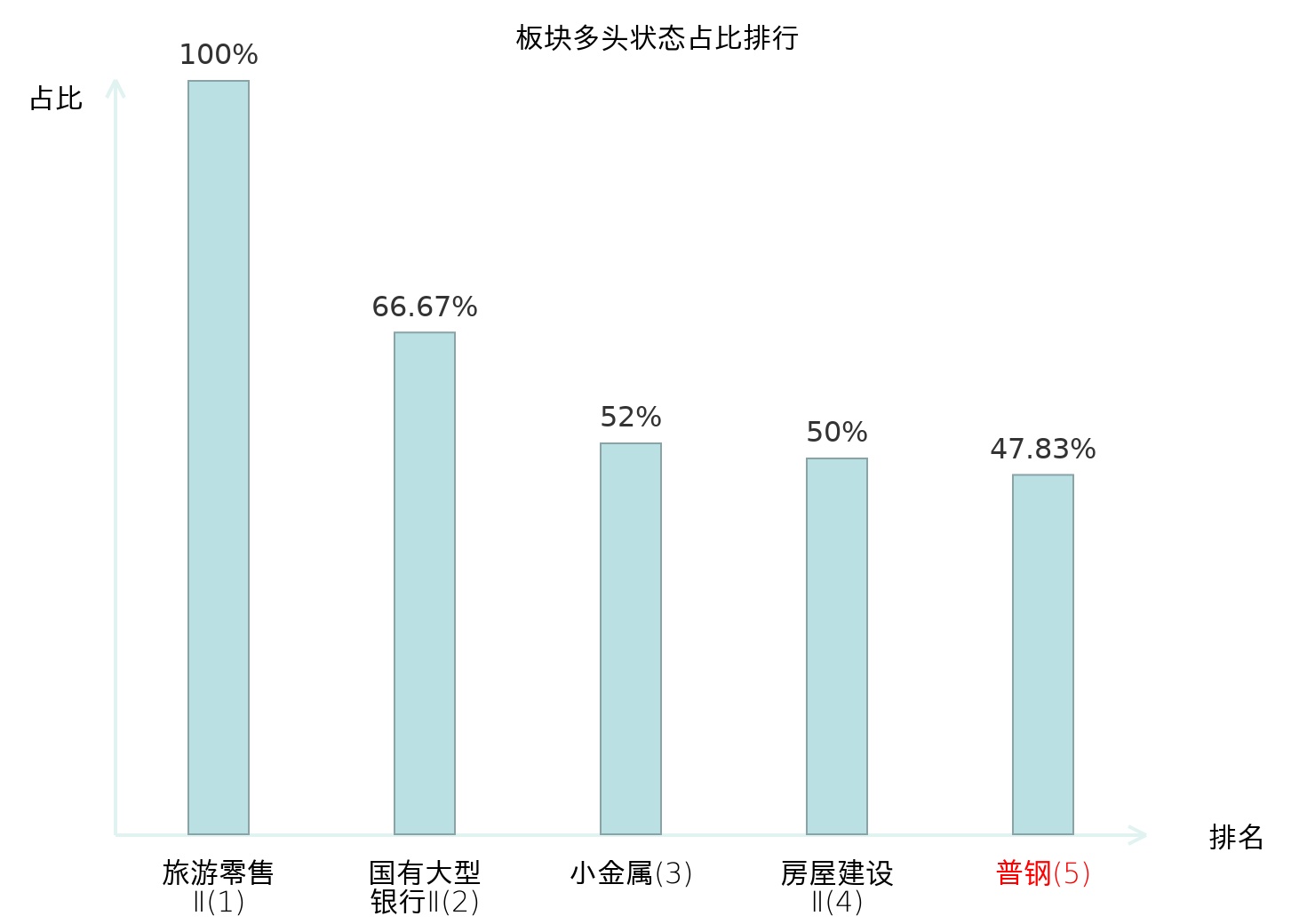 全市场所有行业板块中主力多头状态占比排名中,旅游零售Ⅱ板块位居第一。其他电源设备Ⅱ板块名次提升最快,较昨日上升55位。