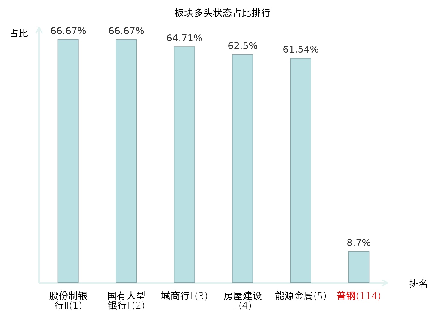 全市场所有行业板块中主力多头状态占比排名中,股份制银行Ⅱ板块位居第一。其他家电Ⅱ板块名次提升最快,较昨日上升102位。
