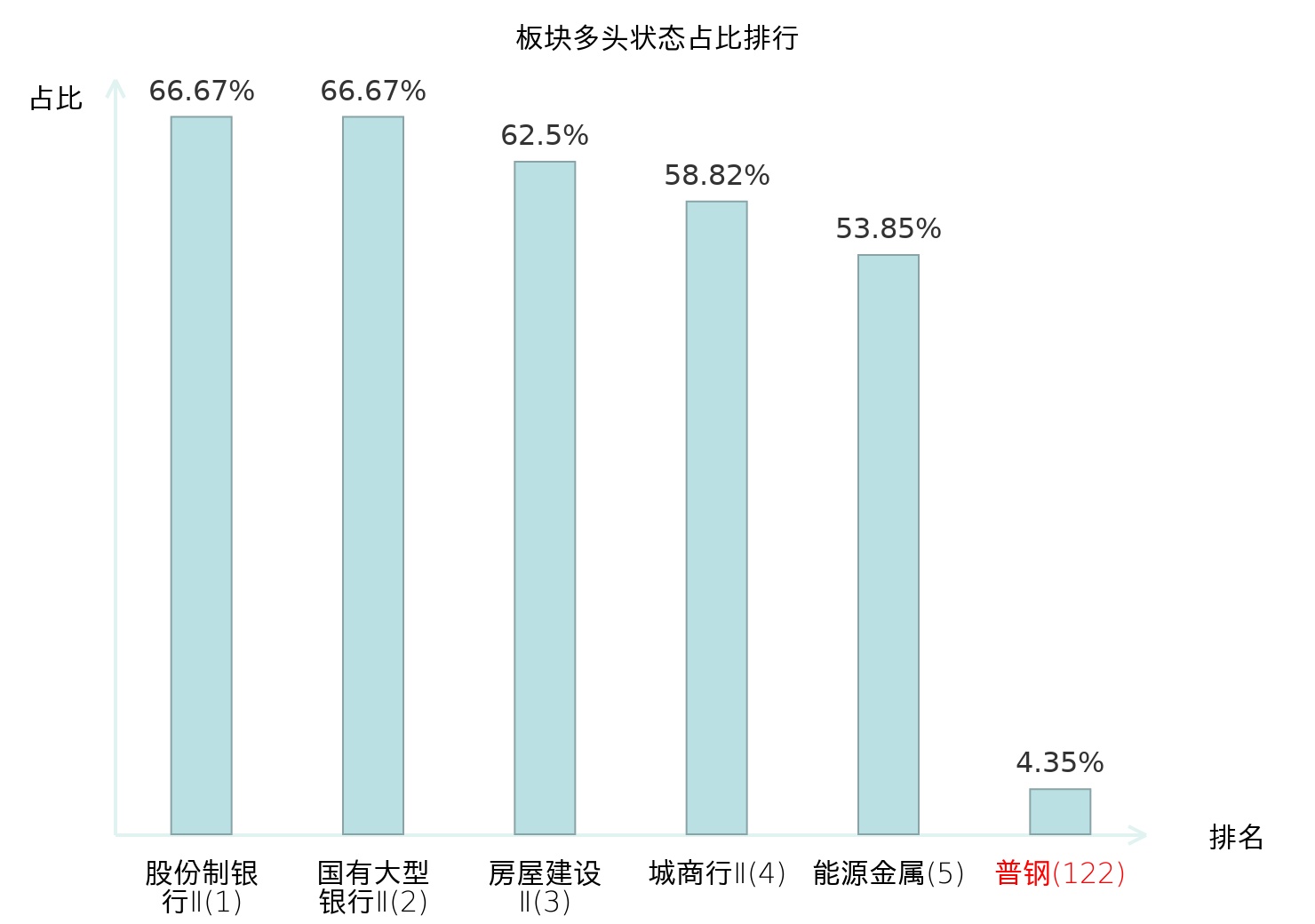 全市场所有行业板块中主力多头状态占比排名中,股份制银行Ⅱ板块位居第一。航空机场板块名次提升最快,较昨日上升68位。