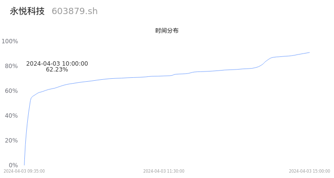 603879永悦科技2024年04月03日成交6.32万手,成交金额3917.28万元,相较昨日缩量9068手,换手率1.76%,成交清淡。