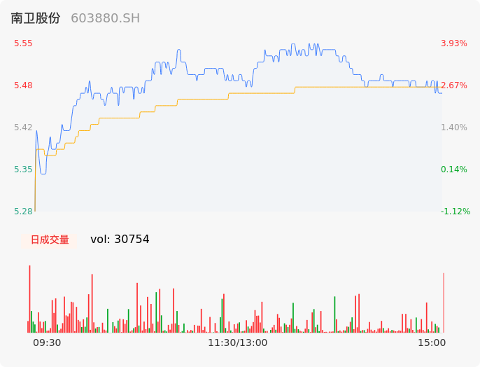 04月27日,南卫股份收报5.51,股价涨幅3.18%,成交金额1686.27万元,换手率1.06%。