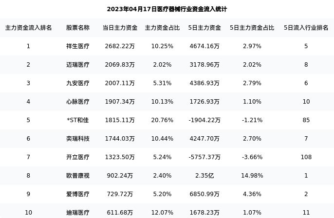 从主力资金流向来看,医疗器械行业今日主力资金流入28.34亿元,在所有申万二级行业中排名:10/131。