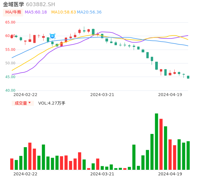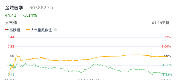 04月19日,金域医学收报44.41,股价涨幅-3.14%,成交金额1.91亿元,换手率0.92%。