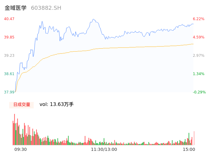 04月29日,金域医学收报40.30,股价涨幅5.77%,成交金额5.40亿元,换手率2.93%。