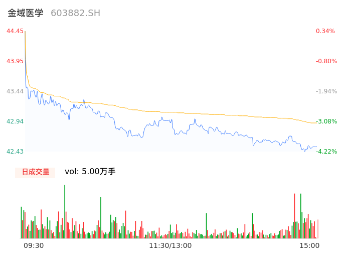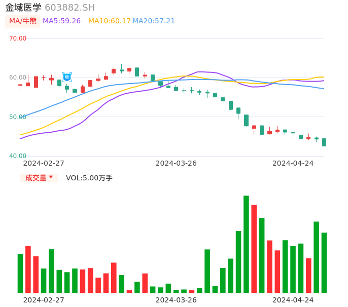 04月24日,金域医学收报42.55,股价涨幅-3.95%,成交金额2.14亿元,换手率1.07%。