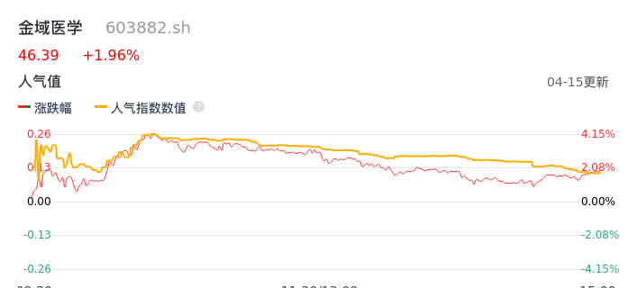 04月15日,金域医学收报46.39,股价涨幅1.96%,成交金额2.08亿元,换手率0.96%。