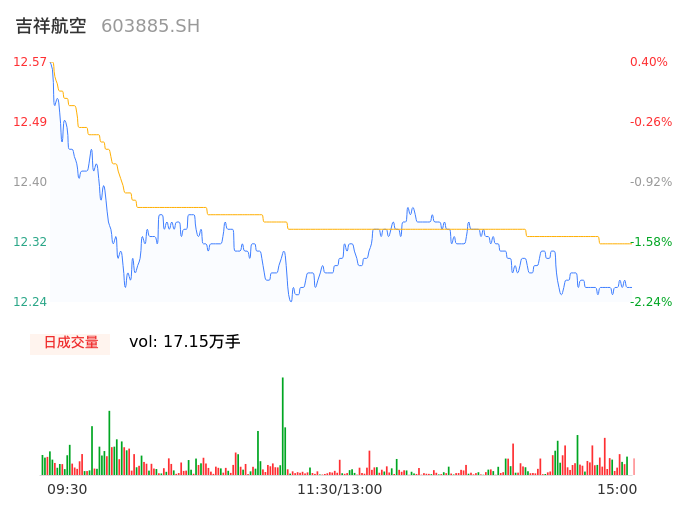 05月10日,吉祥航空收报12.27,股价涨幅-2.00%,成交金额2.11亿元,换手率0.77%。