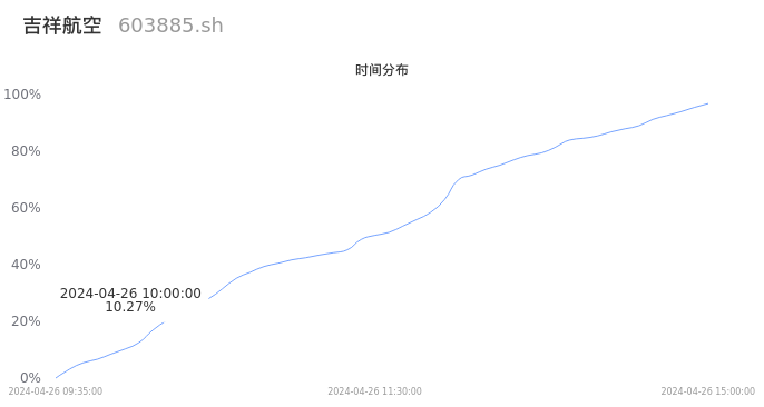 603885吉祥航空2024年04月26日成交22.71万手,成交金额2.81亿元,相较昨日放量7.42万手,换手率1.03%,成交清淡。