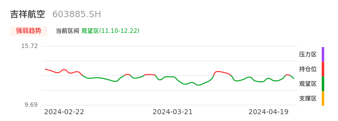 04月19日,吉祥航空收报11.96,股价涨幅-2.76%,成交金额2.90亿元,换手率1.10%。