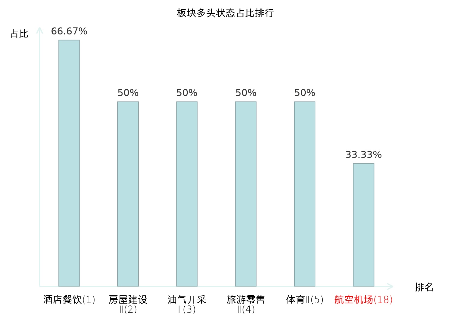 全市场所有行业板块中主力多头状态占比排名中,酒店餐饮板块位居第一。农商行Ⅱ板块名次提升最快,较昨日上升50位。