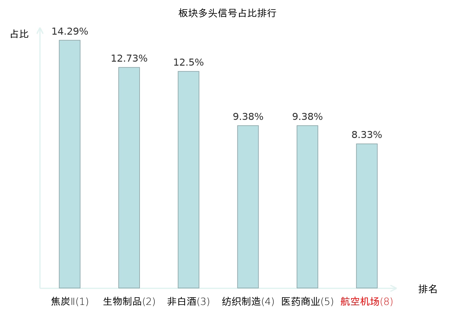 全市场所有行业板块中主力多头信号占比排名中,焦炭Ⅱ板块位居第一。焦炭Ⅱ板块名次提升最快,较昨日上升120位。