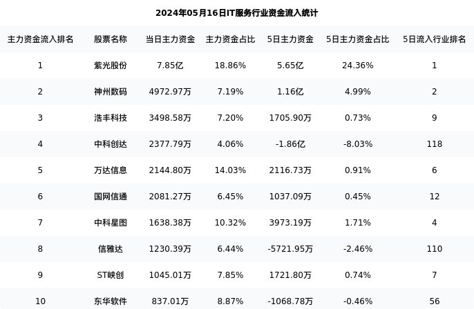 从主力资金流向来看,IT服务行业今日主力资金流入60.71亿元,在所有申万二级行业中排名:38/131。
