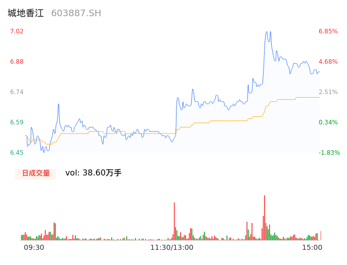 03月22日,城地香江收报6.83,股价涨幅3.96%,成交金额2.59亿元,换手率8.56%。